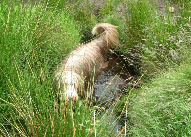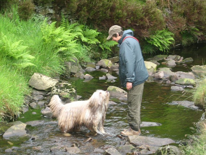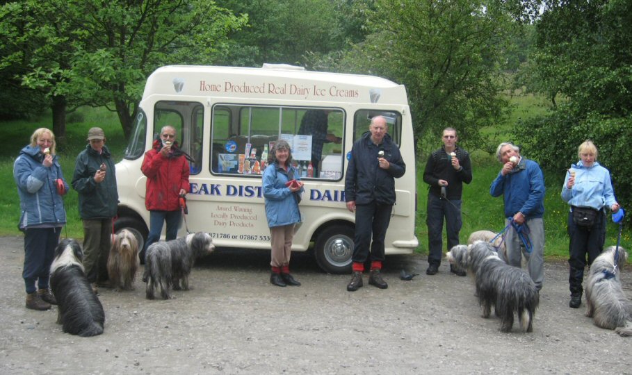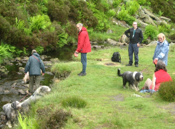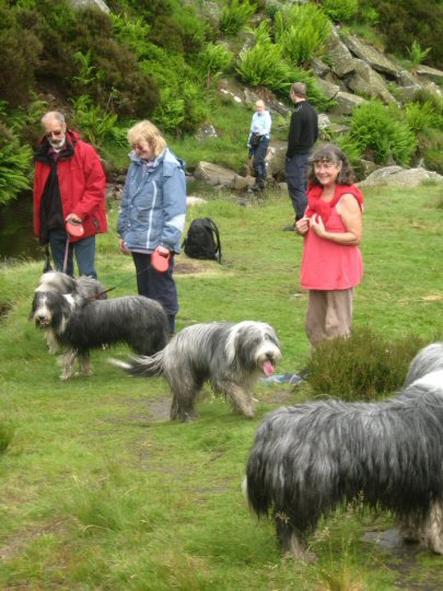 A small but very select band of branch members set out on this showery morning to walk a 4½ mile circuit in the Goyt Valley. Despite the rain, both walkers and beardies enjoyed the beautiful moorland, woodland and river scenery with curlews much in evidence at close quarters on the wilder slopes. And, what joy, there was an ice-cream van strategically positioned back at the car-park!.