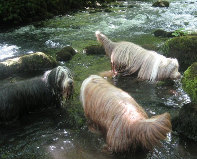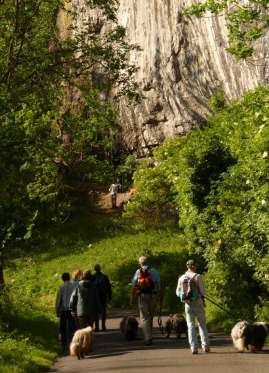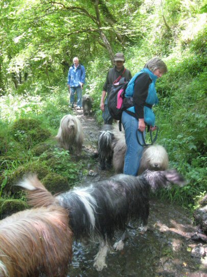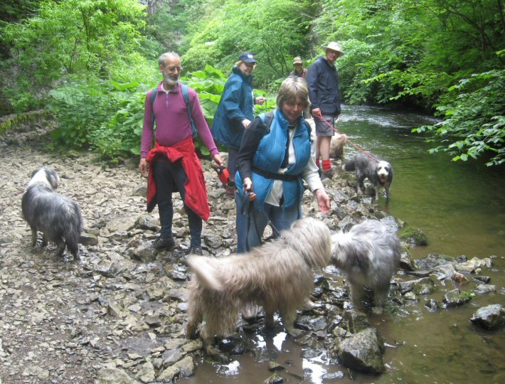 For the second day of the weekend, only a handful of lucky members turned up for today's spectacularly beautiful ramble through Cheedale. The going in places was extremely muddy and slippery on smooth, wet limestone, but everyone enjoyed this most scenic of Peakland walks. Unlike yesterday's morning ramble, the sun shone for the greater part of the route making for some lovely vistas from the more elevated sections. The beardies had a great time - plenty of splashing around in the crystal-clear river to wash out the mud from time to time. Pure magic!