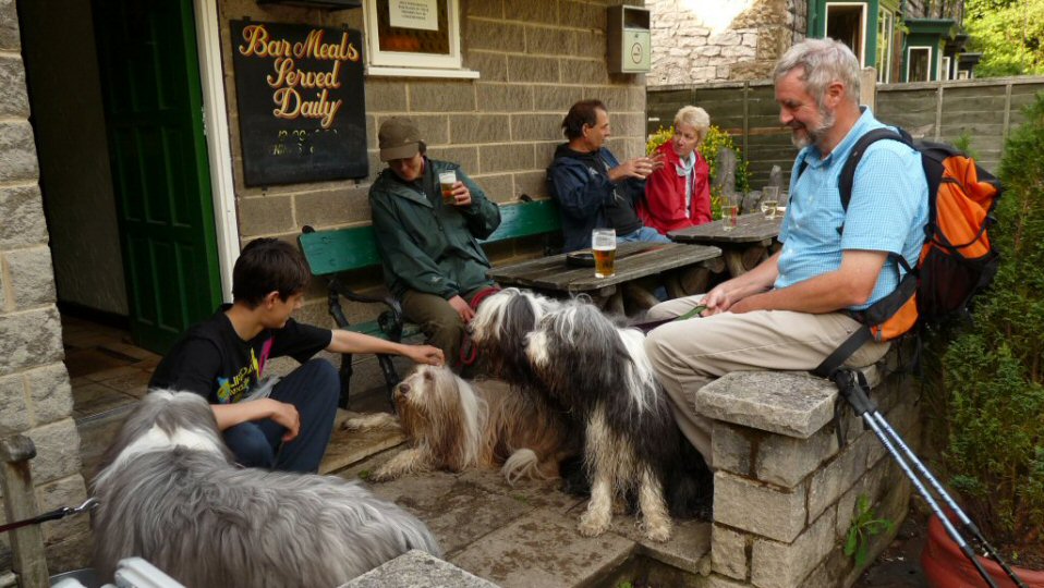 The cloudy, damp weather of the morning ramble gave way to a gorgeous summer's evening, which showed off the lush greens of Millers Dale and Litton Dale and reflections off the water from this wonderful stretch of the River Wye to the best advantage. Our beardies enjoyed the clear stream water en route, whilst some of us elected to sample our own favourite tipples at the 'Angler's Rest'! All photos from this ramble were submitted by Rachel White to whom we are very grateful.